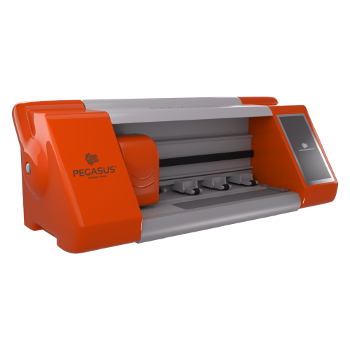 Pegasus es la Máquina cortadora de Hidrogel, diseñada para trabajar en cualquier tienda minorista a la vista del público, su tamaño compacto, elegante diseño y el color naranja, la hace destacar como una herramienta atractiva para tu negocio